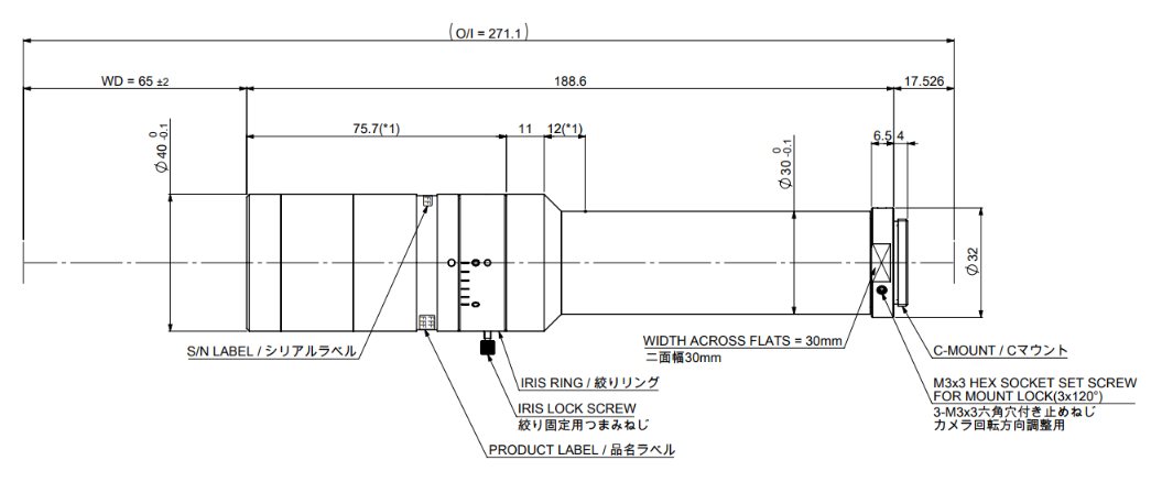 * Depth of field is calculated assuming a horizontal 240TV resolution using a 1/2 CCD camera. (Permissible circle of confusion on the image-formation side: 40μm)