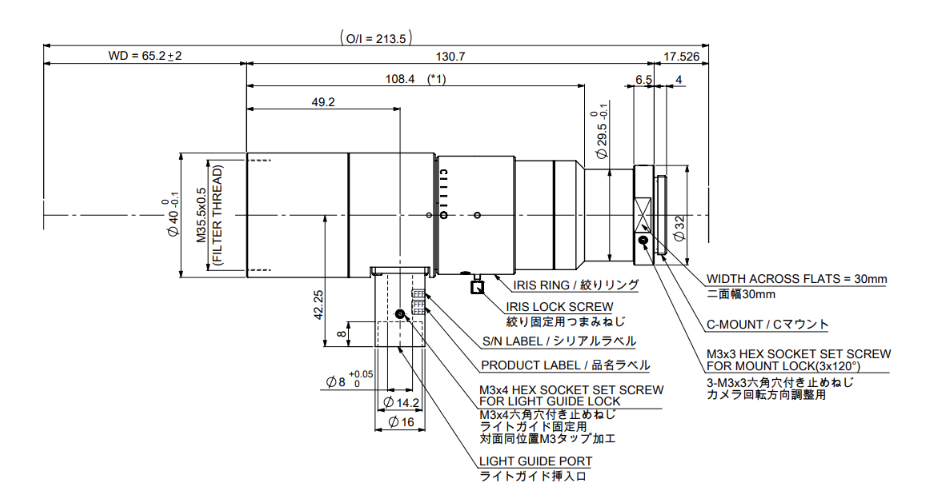 * Resolution values indicate the theoretical resolution at a wavelength of 1300nm. * Depth of field is calculated assuming a horizontal 240TV resolution using a 1/2 CCD camera. (Permissible circle of confusion on the image-formation side: 40μm).
