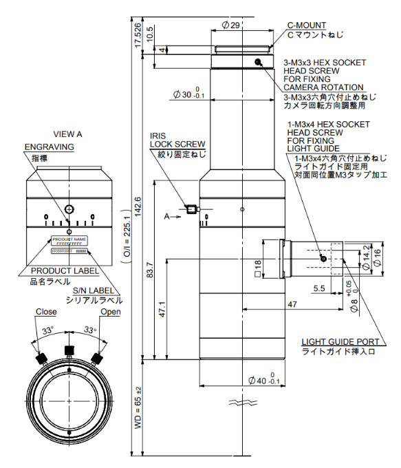 * Depth of field is calculated assuming a horizontal 240TV resolution using a 1/2 CCD camera. (Permissible circle of confusion on the image-formation side: 40μm).