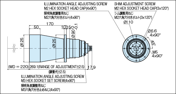 *1 Lens tube length includes LED illumination unit, and adjustable length allowance is 12.5mm maximum depends on LED.