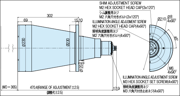 *1 Lens tube length includes LED illumination unit, and adjustable length allowance is 12.5mm maximum depends on LED.