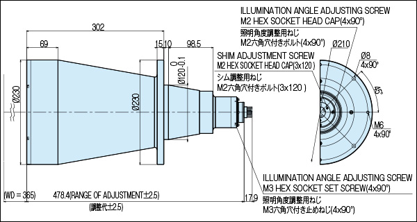 *1 Lens tube length includes LED illumination unit, and adjustable length allowance is 12.5mm maximum depends on LED.